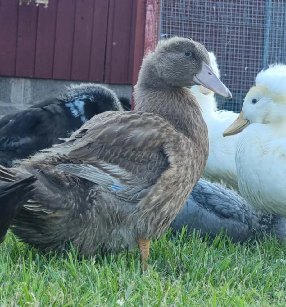 Renrasig Rouen. En primadonna som hörs! Oklart exakt vilket datum hon kläcktes men det var någon gång på vårkanten 2025.
